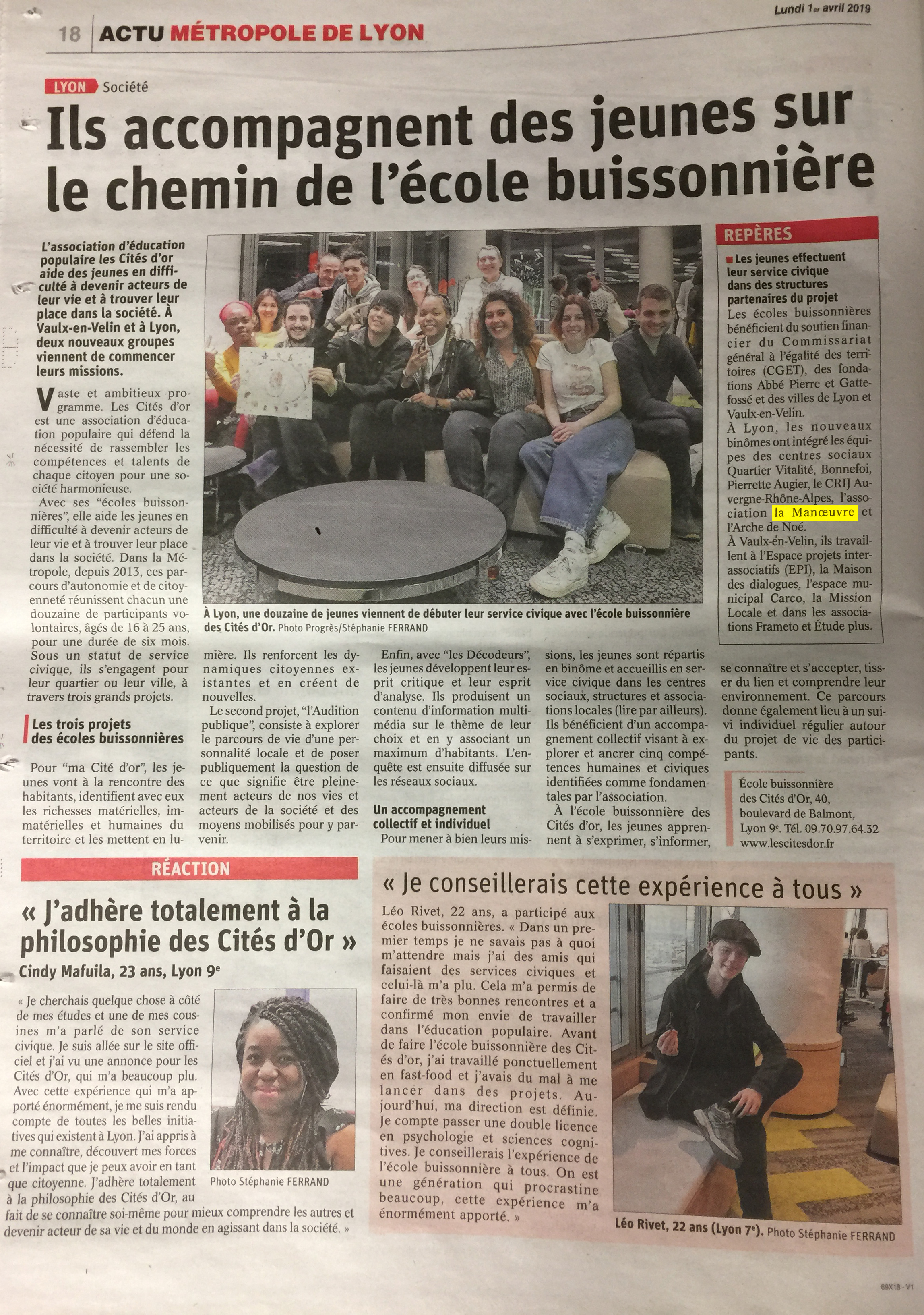 L’article ici décrit l’action d’insertion professionnelle en cours. Cette parution a été éditée par “Le Progrès” le 01.04.2019.